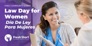 Law Day for Women offers one-on-one meetings with volunteer attorneys who will answer legal questions in the following areas of law*: bankruptcy, disability, family, employment, immigration, landlord/tenant, tax, and wills and trusts.